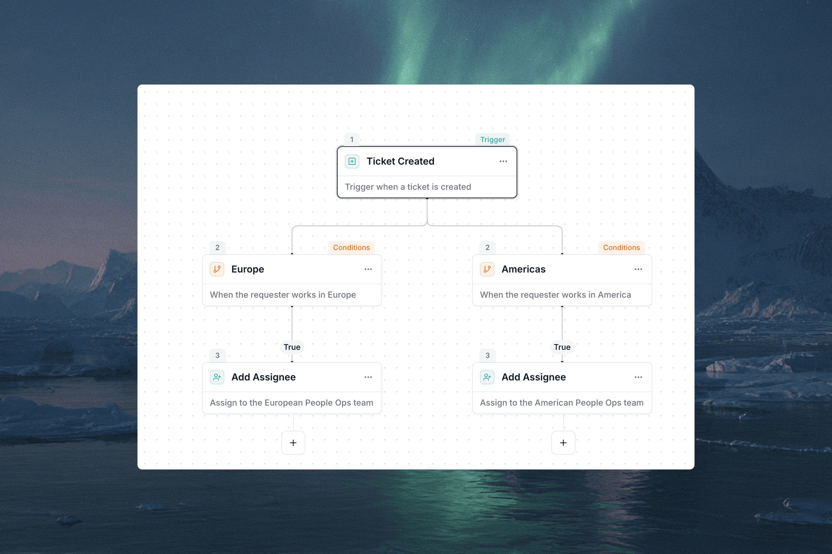 A payroll question can route to the right owner based on the employee’s location. Benefits questions can go to the correct administrator automatically. Requests from a specific department get assigned to the team that supports them.