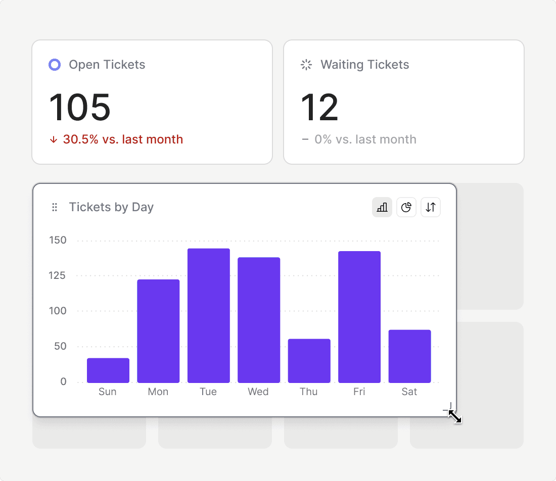 Deliver the insights your business needs. Track agent performance, customer satisfaction, SLA compliance, and operational efficiency metrics to understand and improve your support operations.