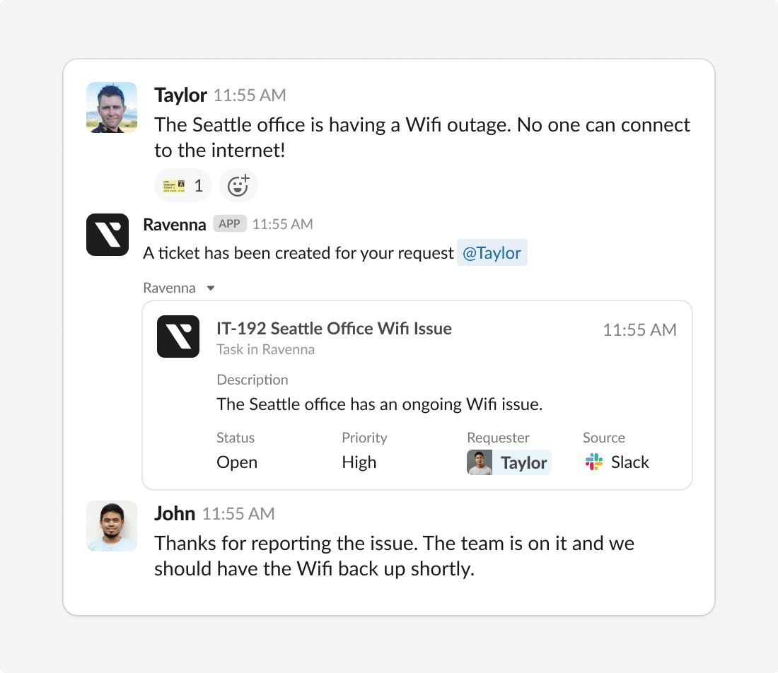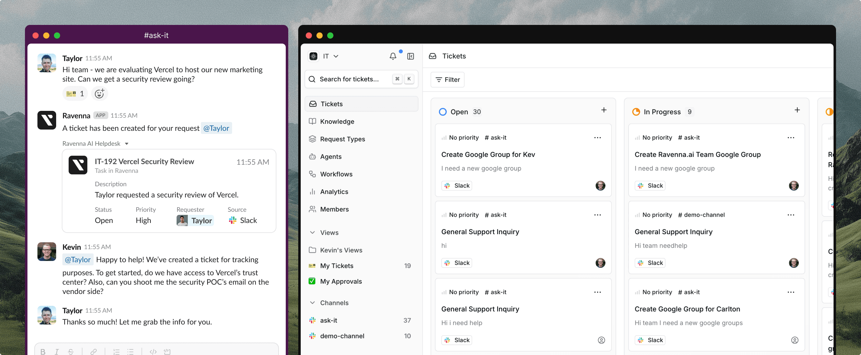 Ravenna is an agentic help desk that lives in Slack, not another portal your team ignores. All of your people, context, and tools in one place.